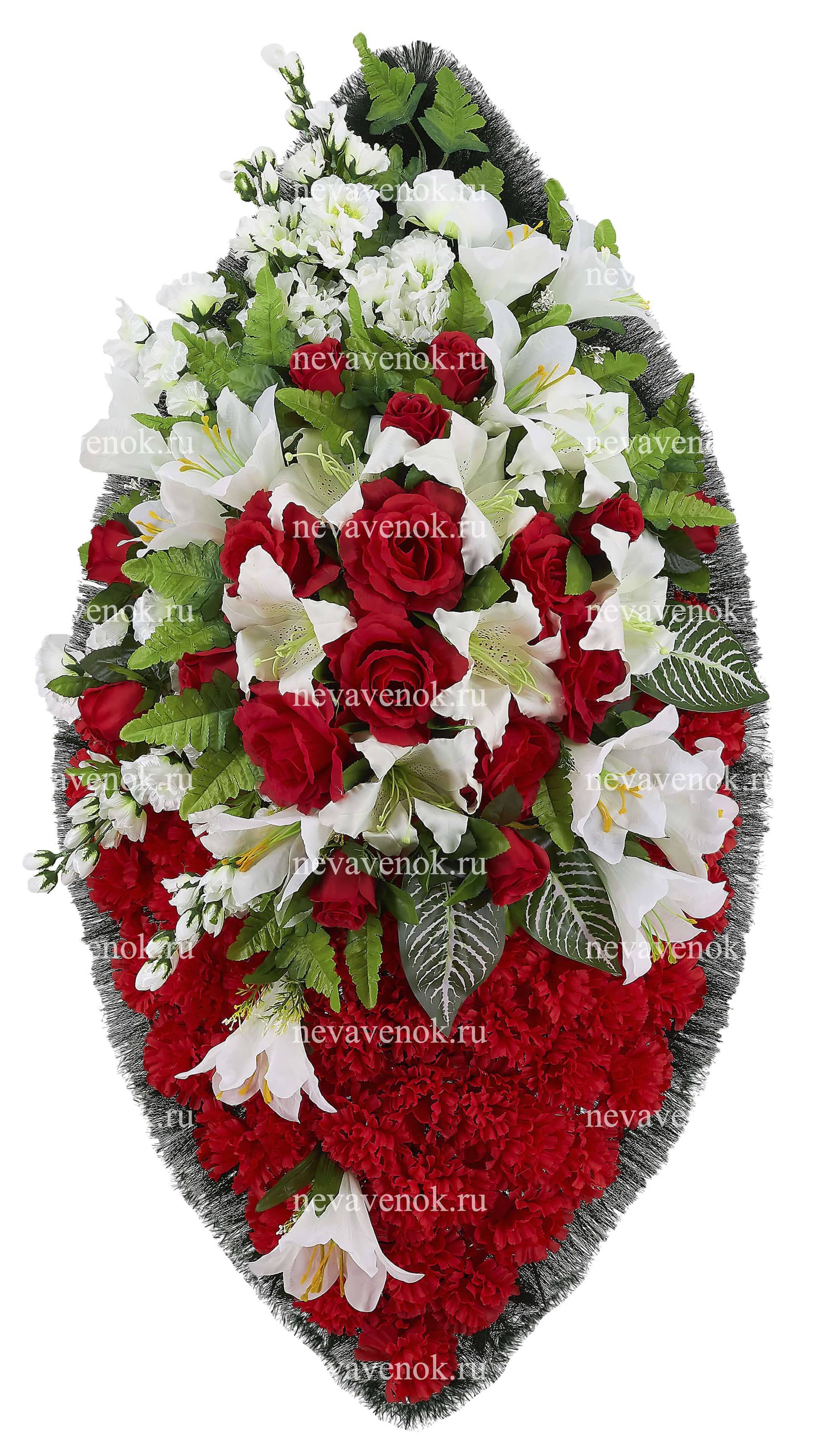 Ритуальный венок изготовлен из искусственных цветов.